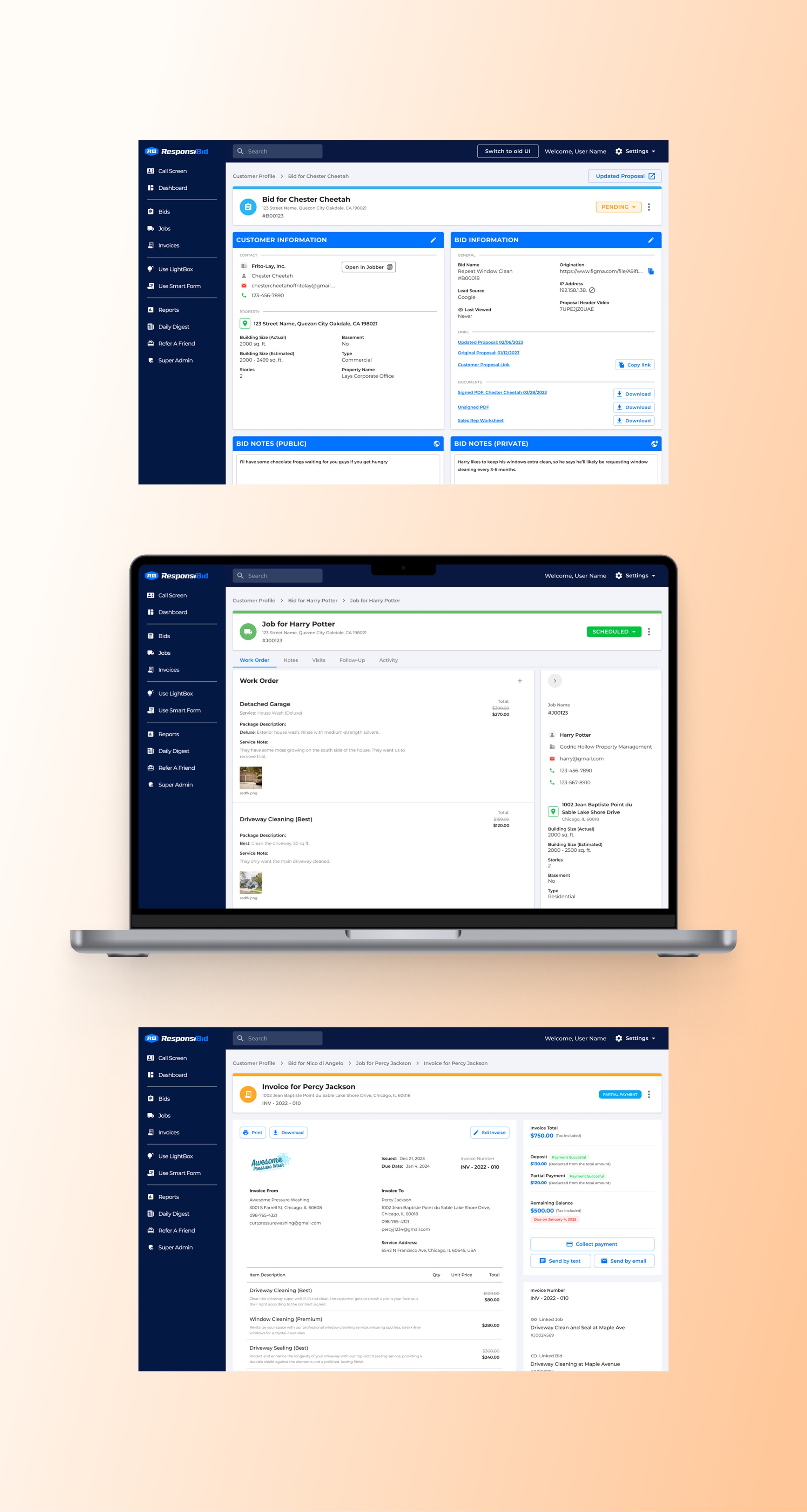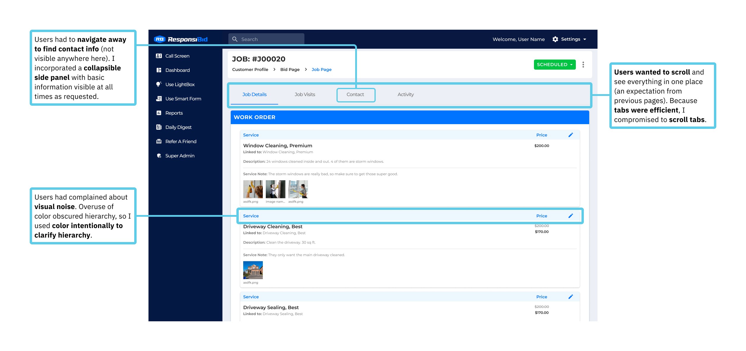 Historically, ResponsiBid was a quoting calculator. The major deployment brought customer profiles that allowed multiple bids to be stored on profiles. My task was next to build jobs, which could be created from bids. I inherited a working design from a designer who had left the team after training me to replace her. I tested this design and made refinements to get to the final solution.